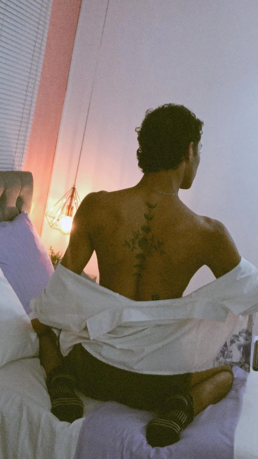 The phases of the moon run down my back as a reminder that everything in life is change, transformation and rebirth. Just as the moon does not always appear complete, I too go through my own cycles, growing, letting go, and starting again. My skin reflects the constant evolution, the silent strength and beauty of each stage.